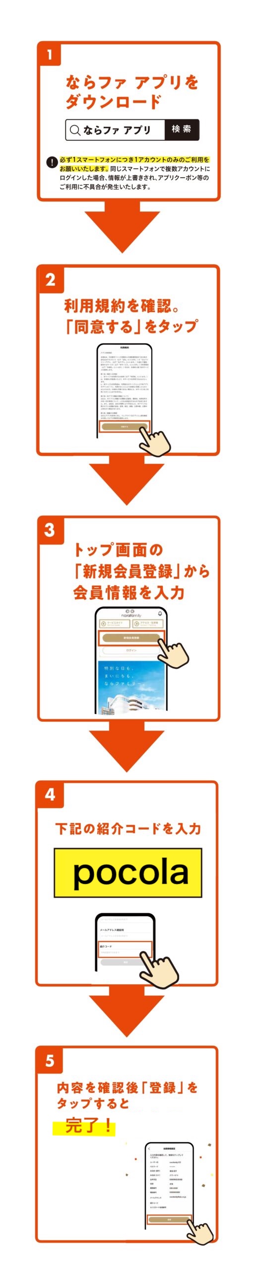 入会カウンターにて、ならファ アプリに新規会員登録いただくと、