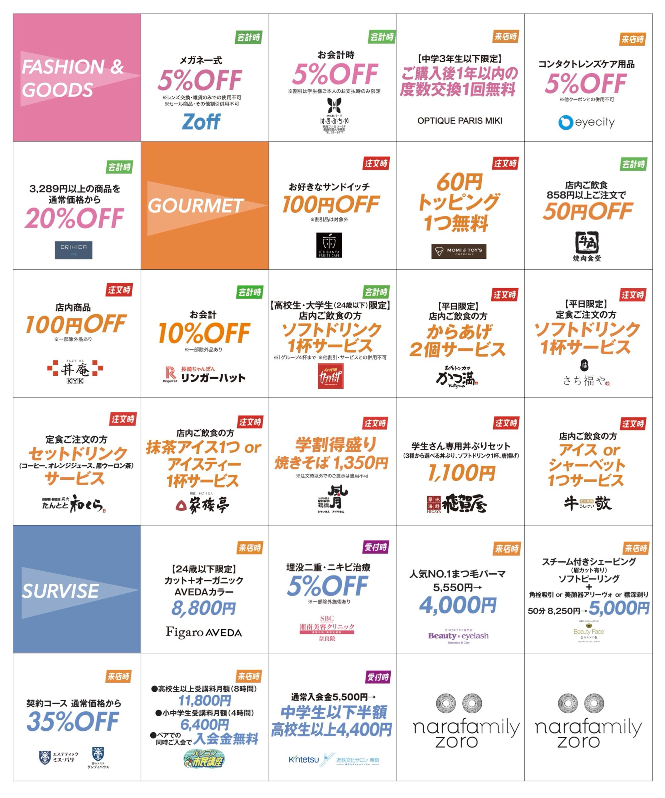 各店で学生証を提示してお得にお食事・お買い物・サービスをお楽しみください✨