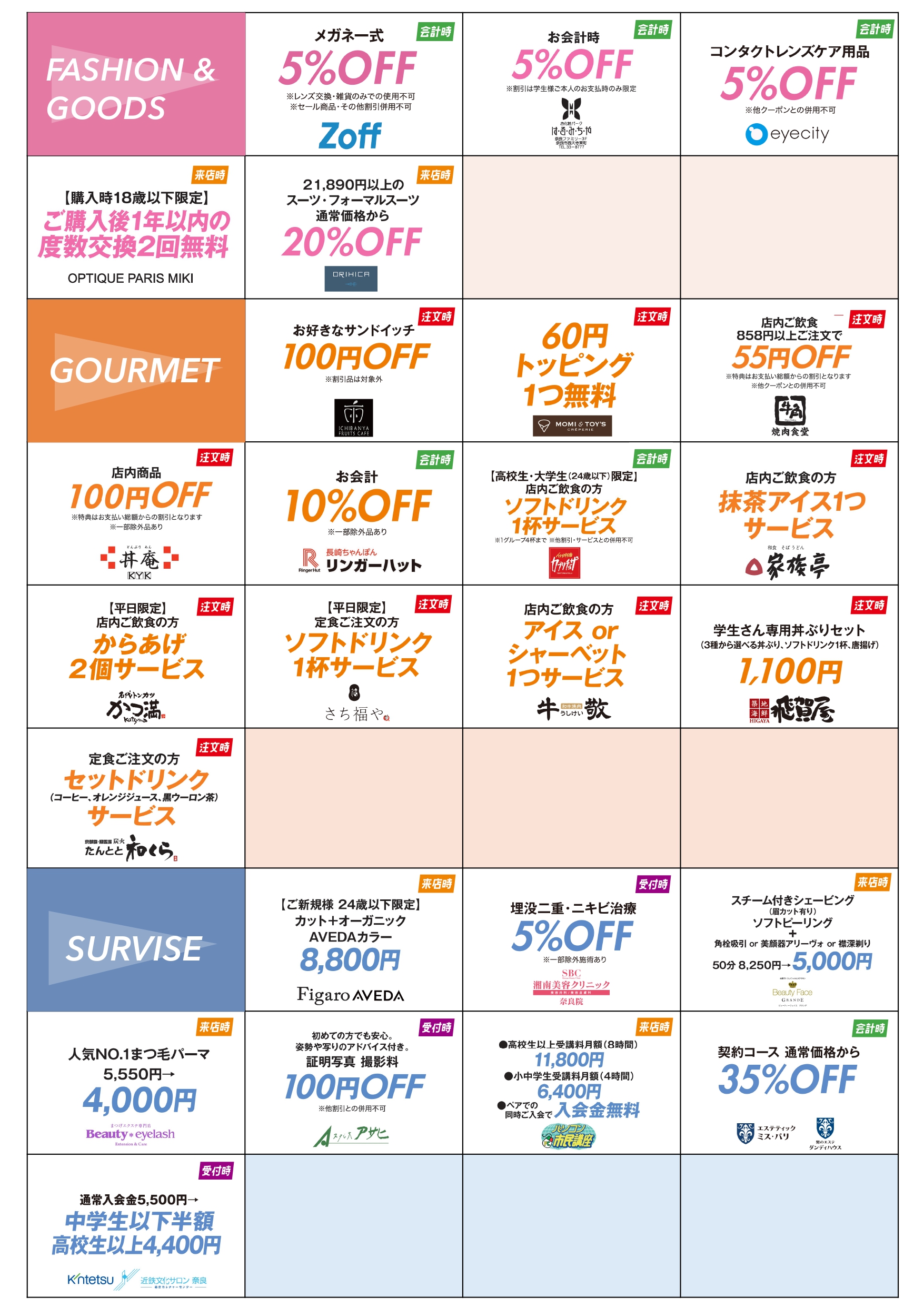 各店で学生証を提示してお得にお食事・お買い物・サービスをお楽しみください✨