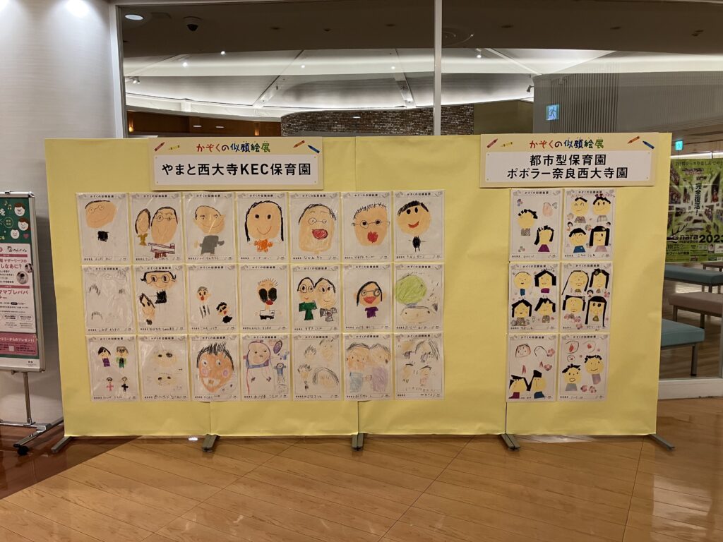 参加園のお子さま・ならファミリーご来館のお客さまによる「かぞくの似顔絵」を展示。