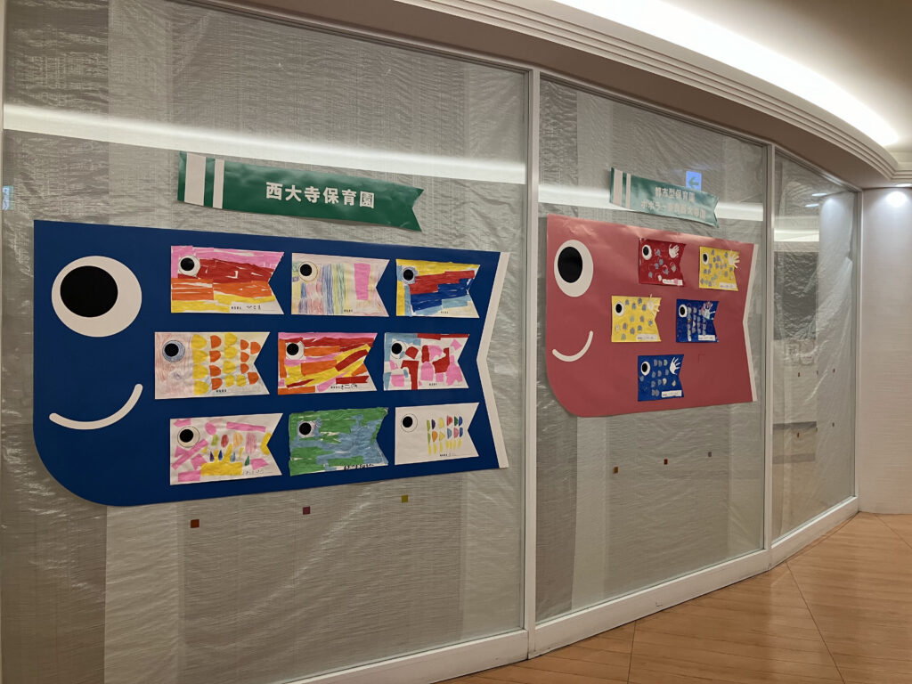 参加園のお子さまによる「こいのぼり」をテーマにした作品展示。