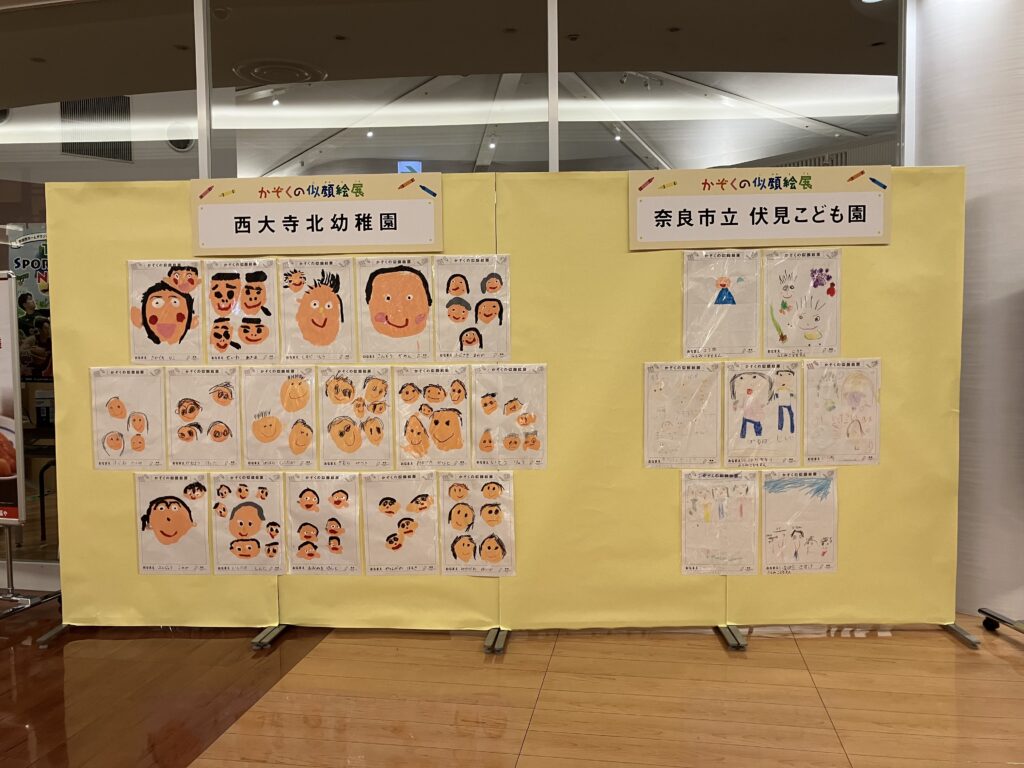 参加園のお子さま・ならファミリーご来館のお客さまによる「かぞくの似顔絵」を展示。