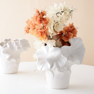 どんなお花にも合わせやすいシンプルなカラーですが、シルエットが特徴的で、お部屋に1つ取り入れるだけでも華やかな印象に。