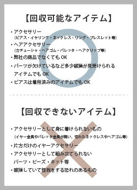不用アクセサリーの回収については郵送、またはお近くの店舗に設置している回収ボックスにて承っております。