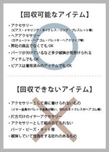 不用アクセサリーの回収については郵送、またはお近くの店舗に設置している回収ボックスにて承っております。