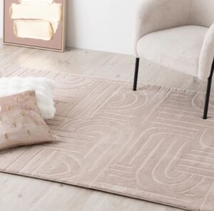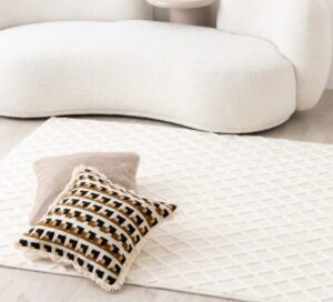 枯山水をイメージして砂を意味するラテン語で「アレーナ」と名付けられたこちらのラグは、エレガンスにもナチュラルにもコーディネートできる枯山水風の幾何学模様を凹凸で表現しました!