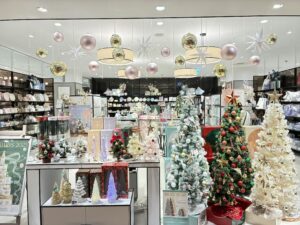お店の前では、たくさんの様々なデザインのオーナメントをデコレーションした大きなツリーを飾っていたり、
