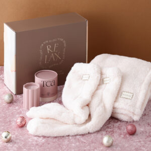 暖かく手触りの良いスロー・ルームソックスと、フレグランスキャンドルがセットになったギフトBOX。