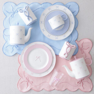 ティーポットやマグカップ、グラスなどそれぞれに合わせてあしらわれたリボンのデザインが、華やかに彩ってくれます🫖