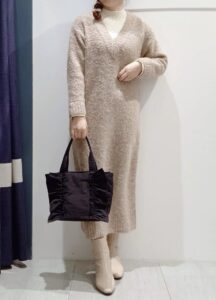 ワンピース:一枚でレイヤードコーデ完成!ブークレーニットワンピース ¥7,697(税込)