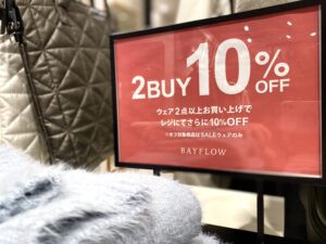 ファッション グッズ 2F BAYFLOW BAYFLOWセール開催中‼️ 2025年12月17日(水) 更新 BAYFLOW SALE START‼️ 人気のアウターやセーターなど、 冬物アイテムをお得にGETできる 大チャンスです♡♡♡ さらに‼️ ただいまウェア2点以上のお買い上げで セールアイテムがレジにてさらに10%OFF‼️ ぜひ一度店頭にてご覧下さいませ😃 ご来店お待ちしております☆ 2025年12月17日(水) 更新