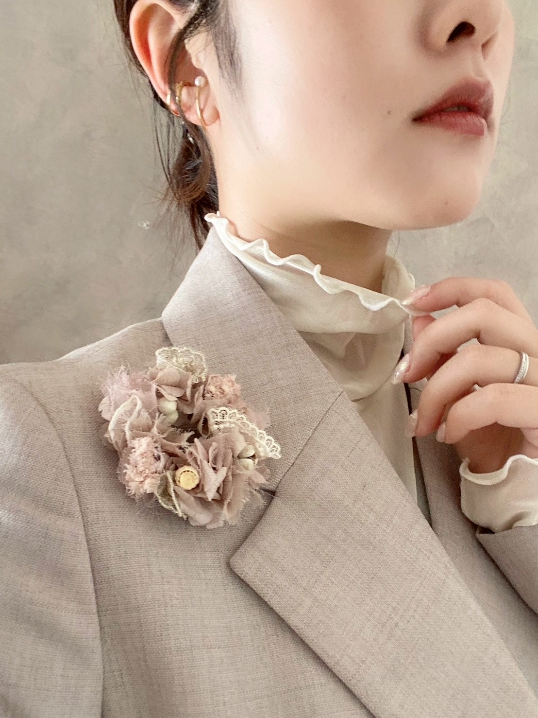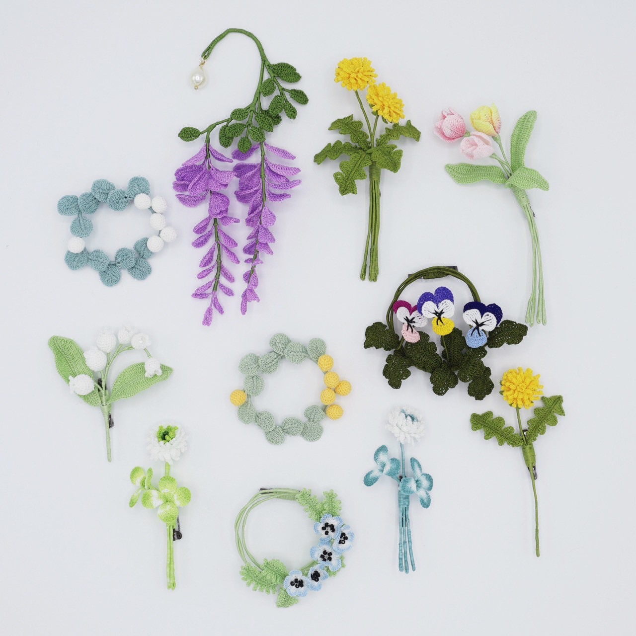 糸からつくる花や植物をモチーフにしたアクセサリーを