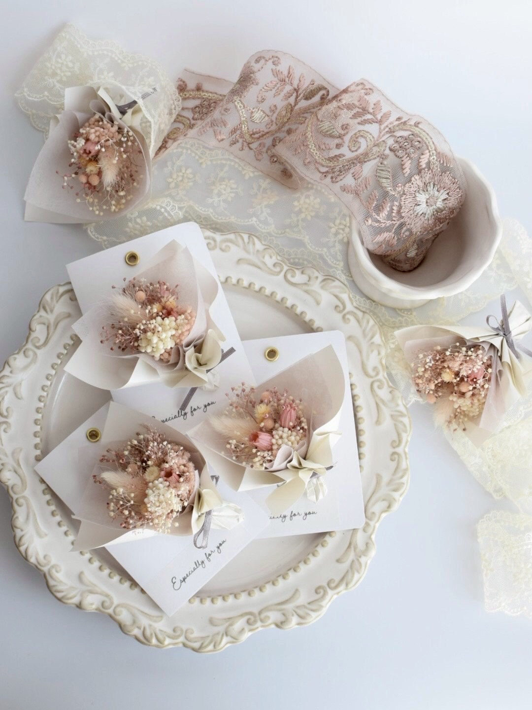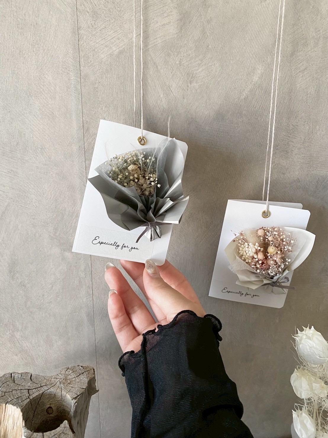 一点ずつ手仕事でお作りしています。ドライフラワーを中心に、