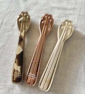お箸とスプーンのコンビケース、カトラリーセットも3柄から選べて、ぷっくりした肉球がたまらなく可愛いセットです。