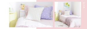 すでにお布団をお持ちの方には、フリルチェックの寝具カバーセットをお勧め💁♀️
