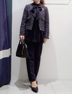 上品なネイビー使い♩ボウタイとツイードの合わせが華やかな雰囲気です◎