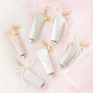 アクセサリー感覚でポーチやバッグをデコレーションできる、キーホルダーチャーム付きのハンドクリームです🤍