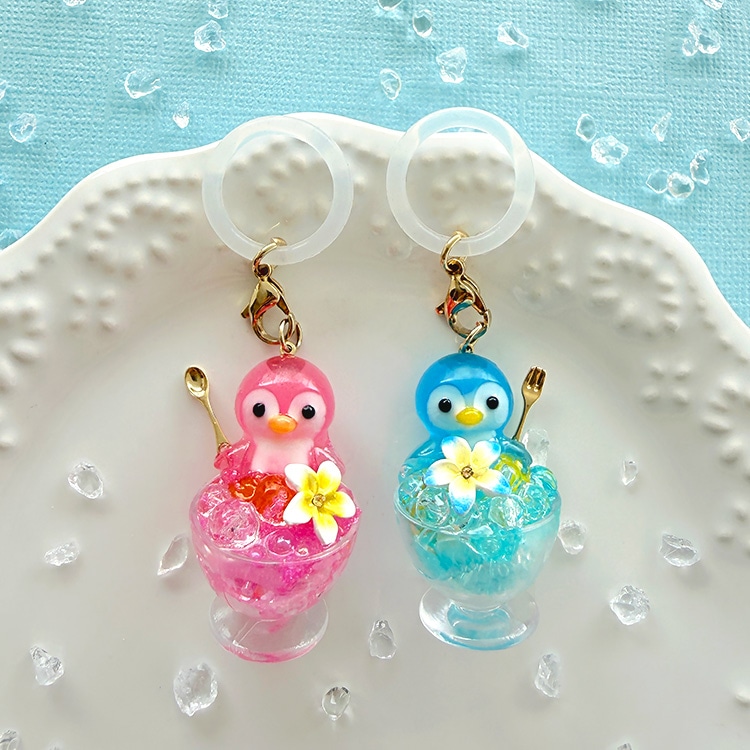 レジンの色を変えたり、ラメや透明感で氷のようなきらめきを表現したり、