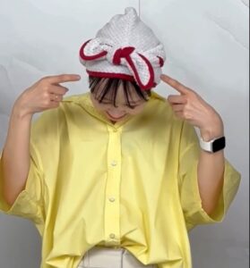 ④端を頭の上で交差させてリボンのように結び完成✨✨