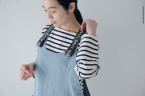 薄手のさらっとした素材感と背面の大きく開いたスリットで家事動作も着脱もスムーズなエプロン