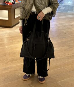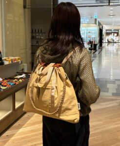 遊び心のある配色が目を惹く、レディースの多機能バッグ。トートバッグ、ショルダーバッグ、リュック(ナップサック)として使える3wayデザインで、デイリーユースの大人カジュアルはもちろん、旅行やアウトドアシーンにもおすすめのアイテムです。