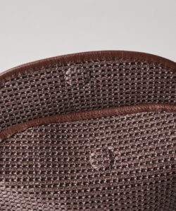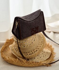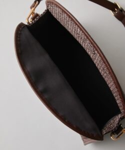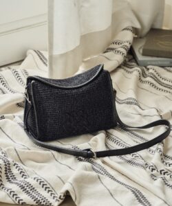 ラフィアの軽やかな風合いに、レザーのパイピングが上品◎