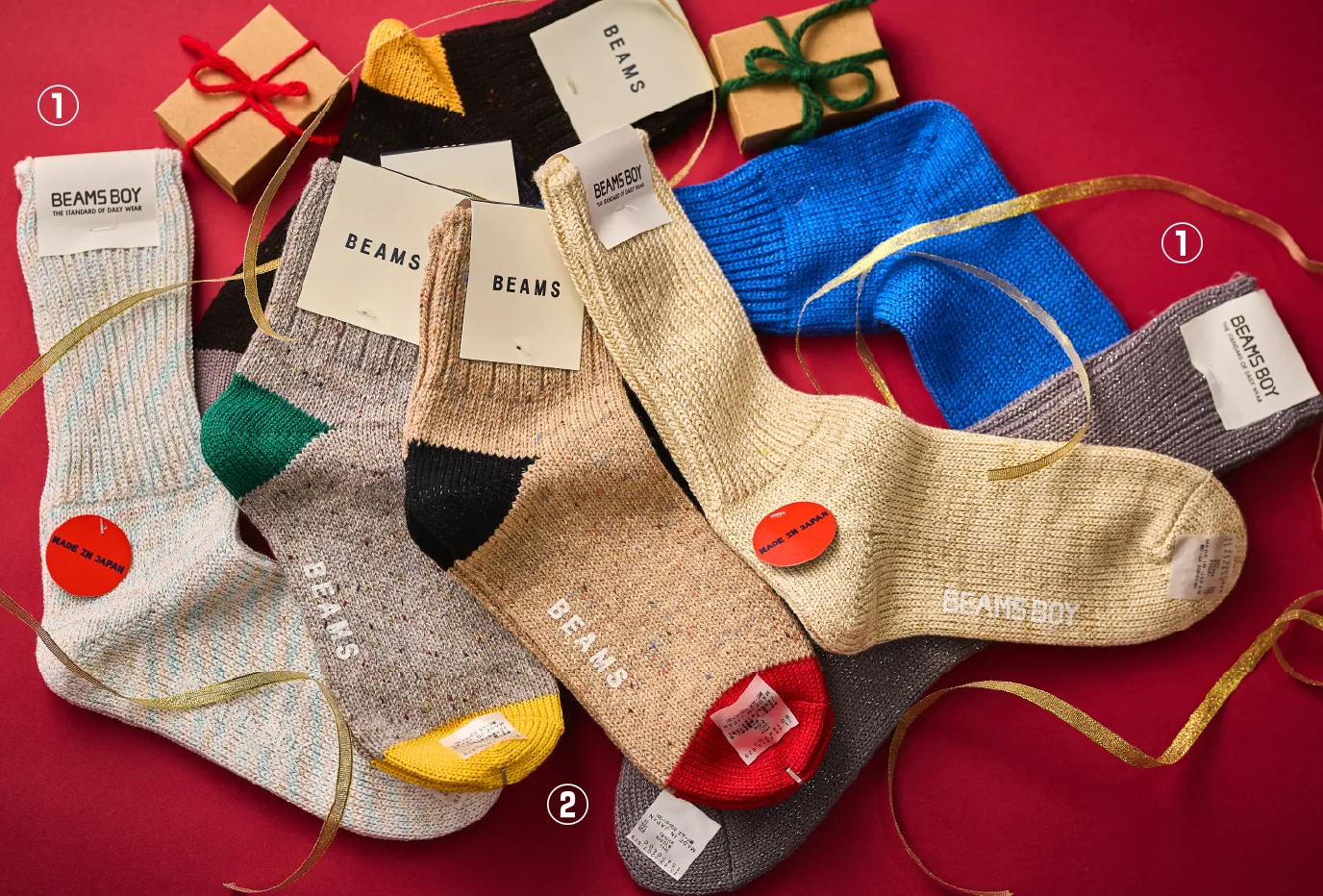 ソックスは、贈る人も贈られる人も笑顔になれるカジュアルギフト。この冬の「BEAMS」には、クリスマスらしい色彩豊かで心躍るデザインが登場します。