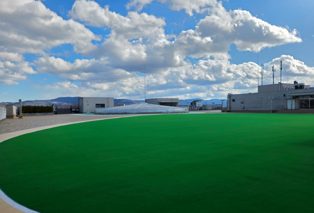 シルクロードの終着点である奈良。人・文化・技術が混ざり合い、数々の物語が生まれた場所であることにちなみ、屋上は『砂丘とオアシス』に見立ててデザインされました。広場は広々とした人工芝で、訪れる人の心と体が休まる空間になっています。