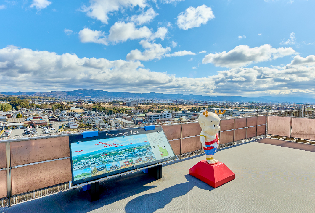 奈良の街並みと四季折々の自然を望むことができる「スカイデッキ」。平城宮跡はもちろん、若草山など見渡すことができ、お買い物の合間のリフレッシュにぴったりの場所です。
