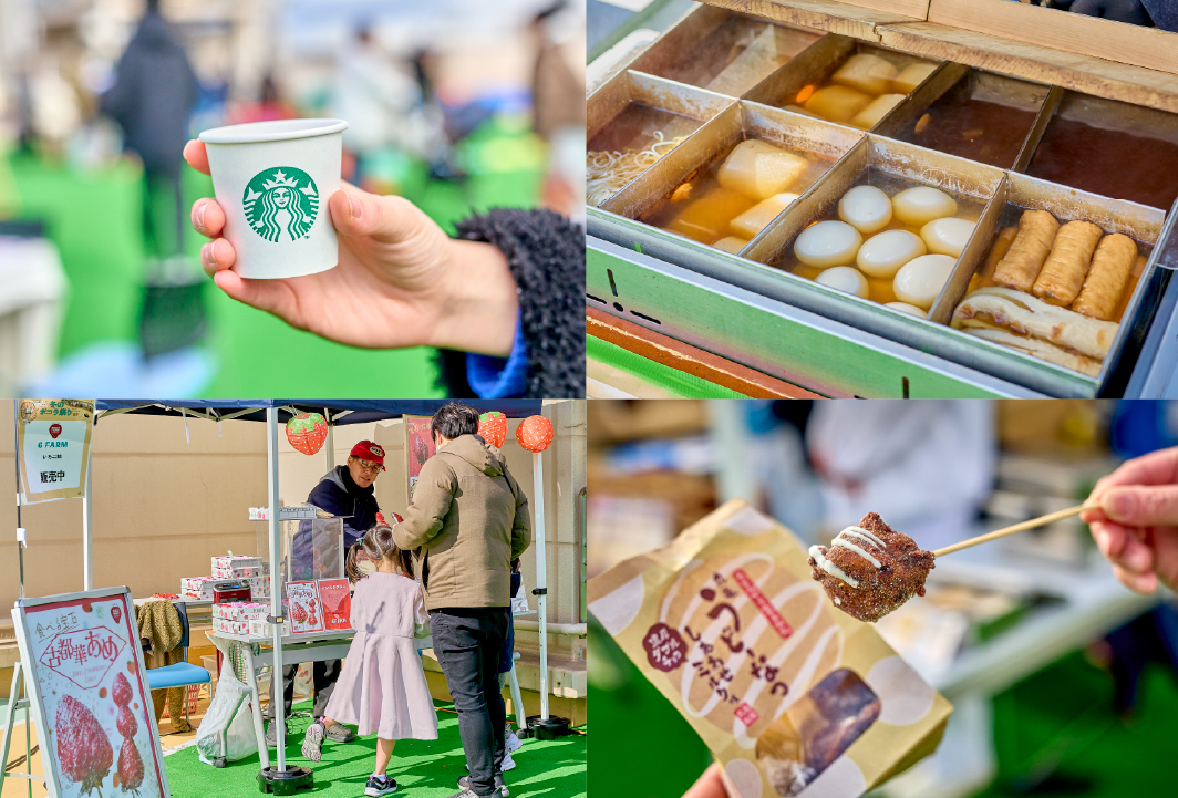 イベント時は雪がちらつく寒さで、「スターバックス」のコーヒーの試飲や「たんとと和くら」のおでんで温まるお客様がたくさん見られました。