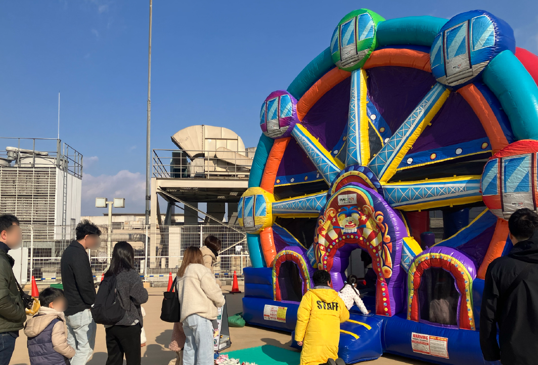 24日には大きな観覧車型のトランポリンなど安心して遊べるふわふわ遊具も登場(25日は強風で中止)